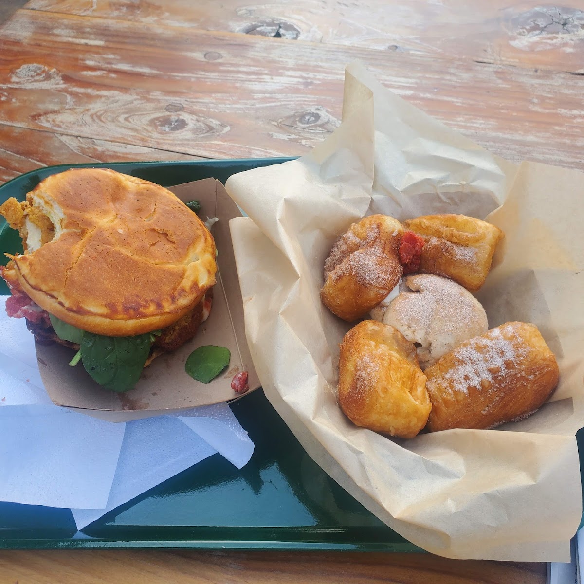 Great outdoor seating area. Solid food. It’s right next to a creek. Was able to take my dog to eat outside after a day of exploring.